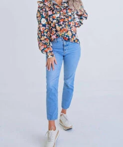 Karlie women Floral Abstract Signature V-Neck Top in Rust