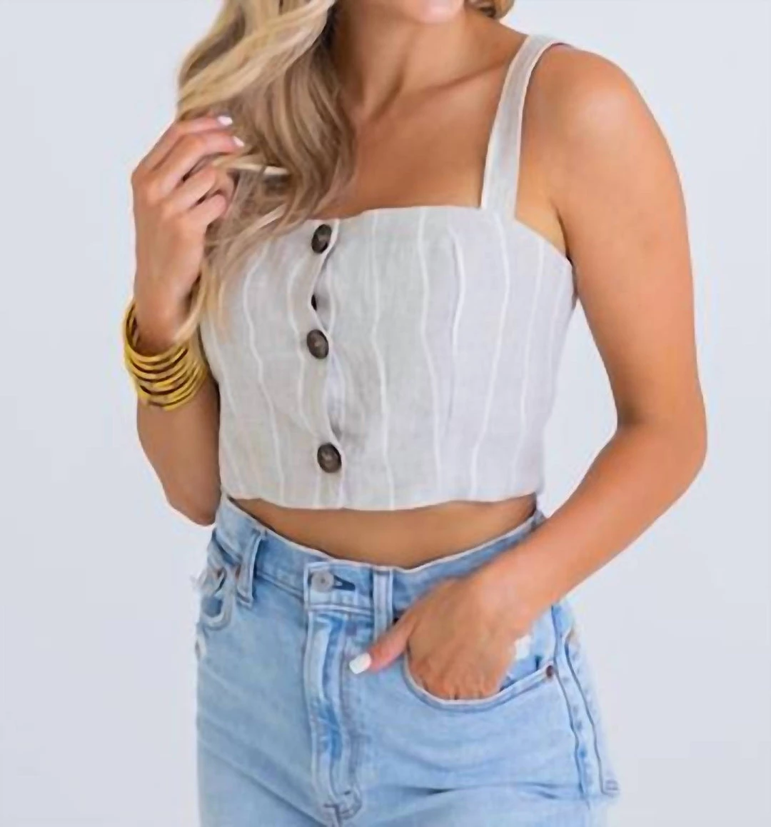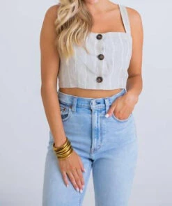 Cropped linen top with button detailing
