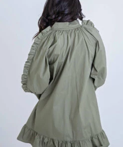 Karlie women Solid Poplin Ruffle Sleeve Dress in Olive