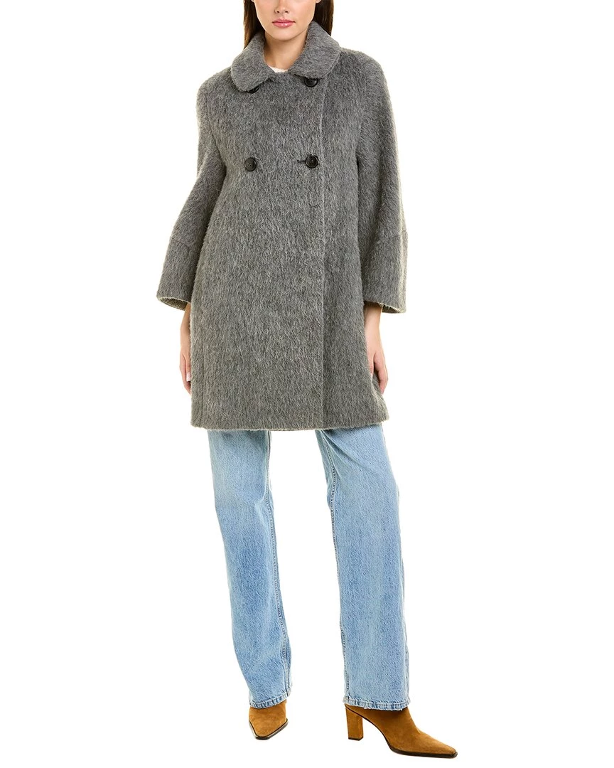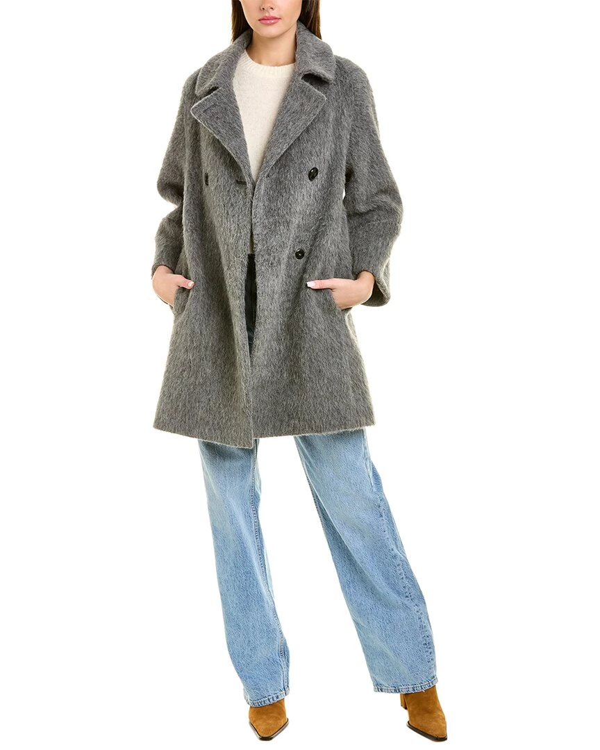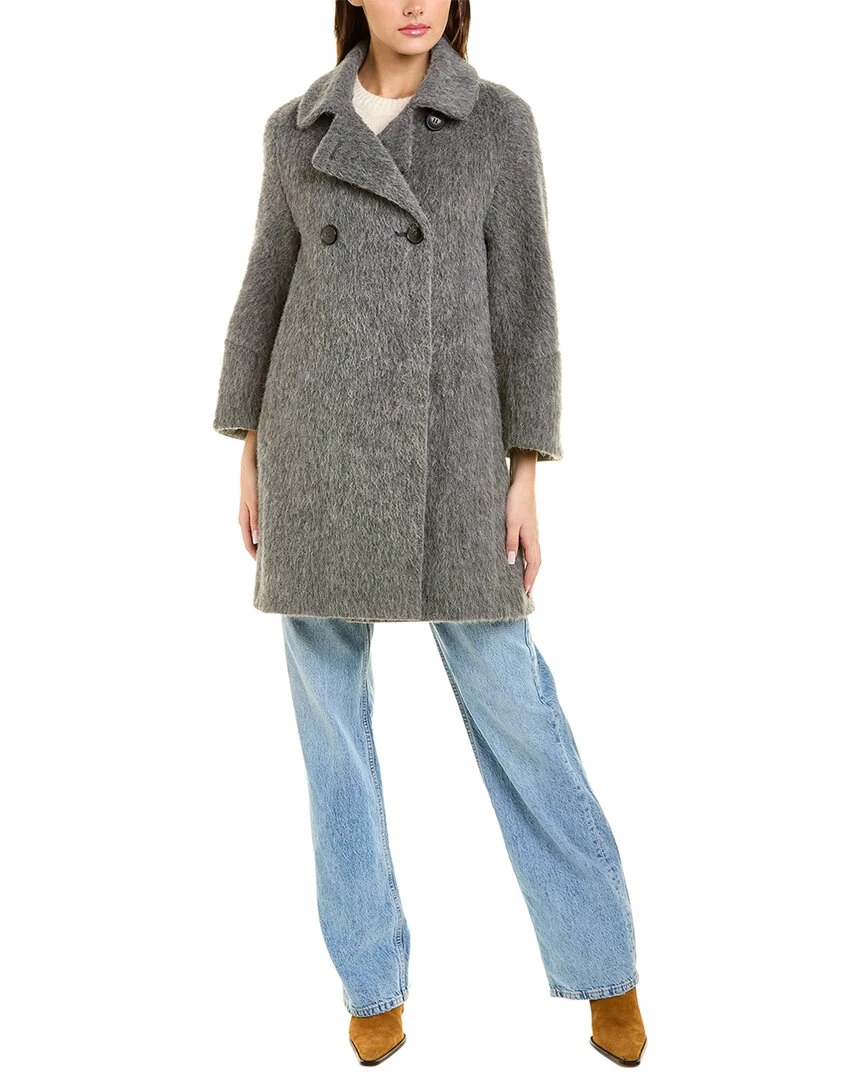 - Double-Breasted Wool & Alpaca-Blend Peacoat In Grey With Two Front Pockets