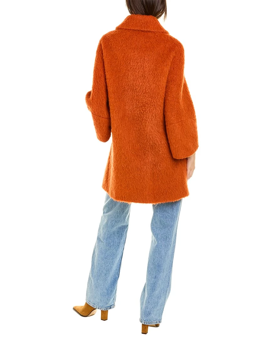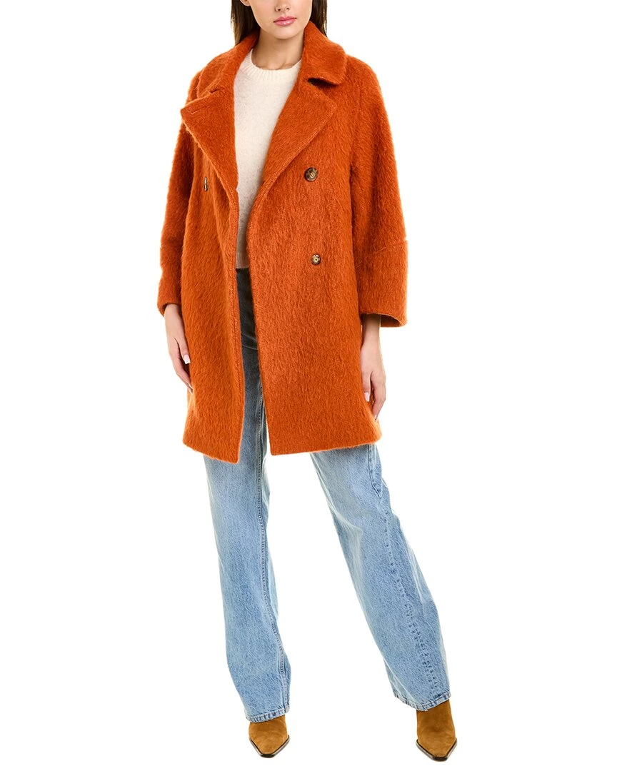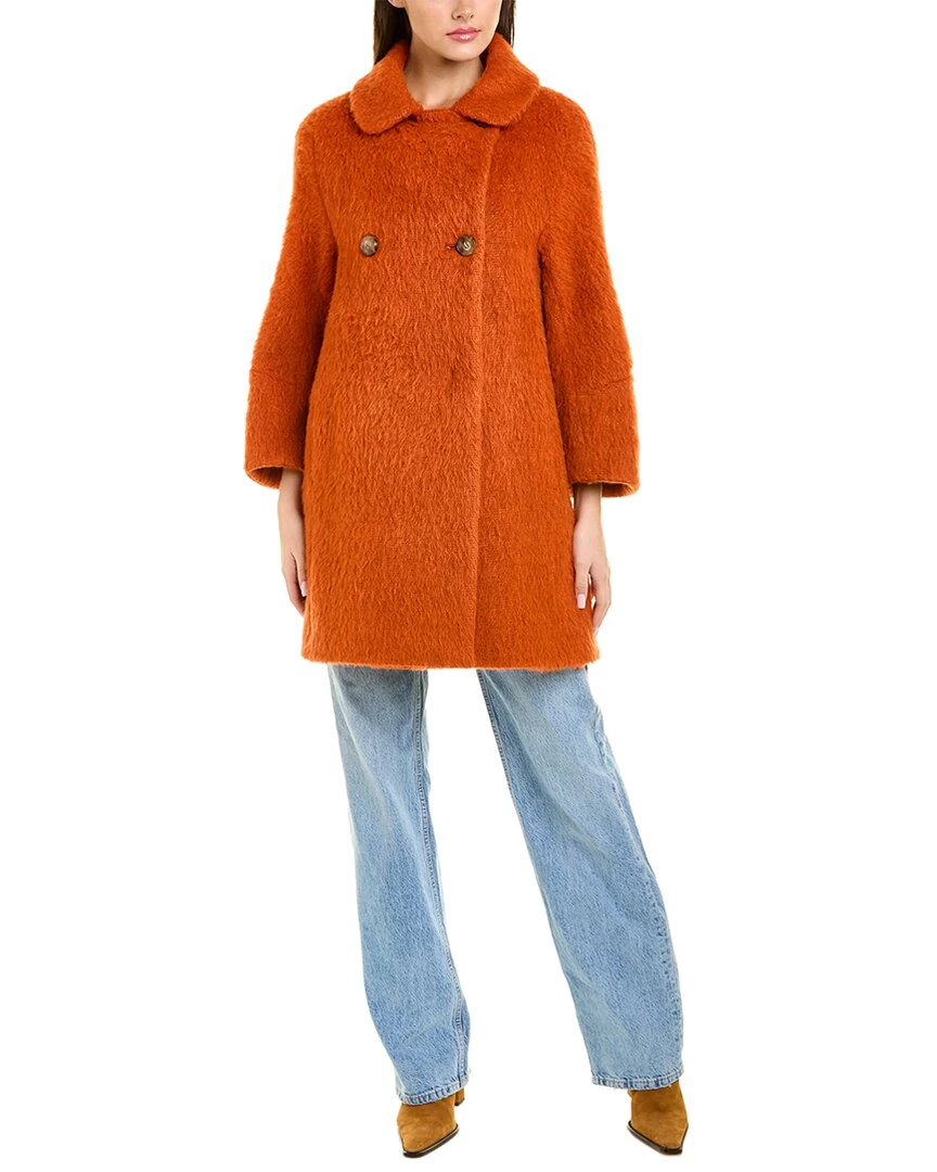 - Double-Breasted Wool & Alpaca-Blend Peacoat In Orange With Two Front Pockets