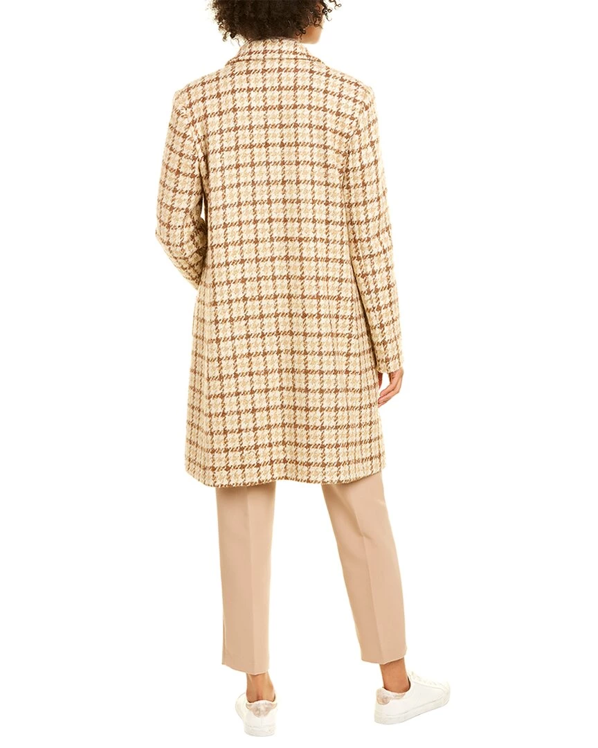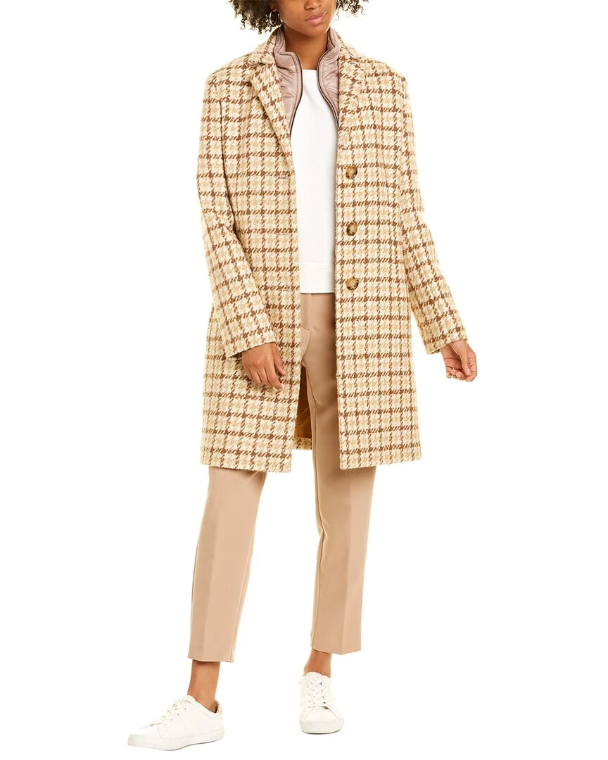 - Removable Bib Wool & Cashmere-Blend Coat In Camel Houndstooth With Notched Lapel, Contrast Inner Bib And Two Front Pockets