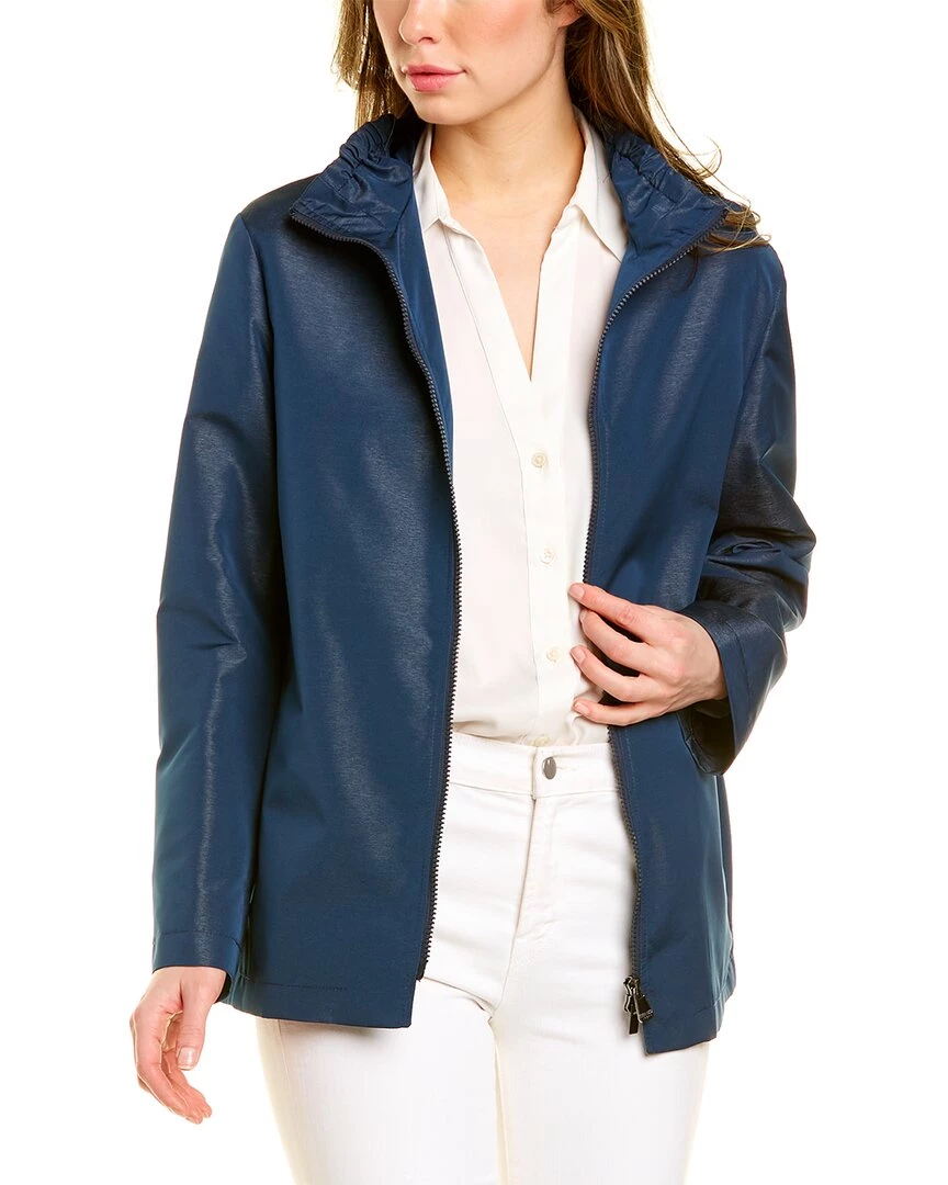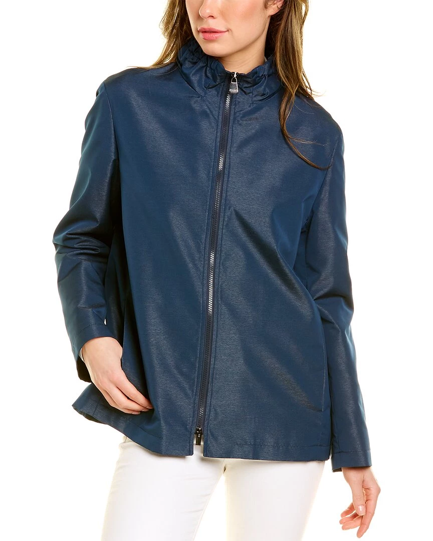 - Scrunched Collar Raincoat In Navy With Elasticized Collar And Two Front Pockets
