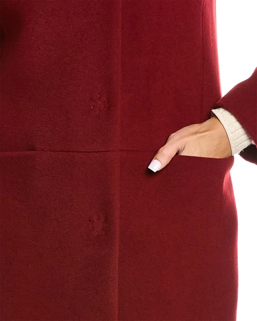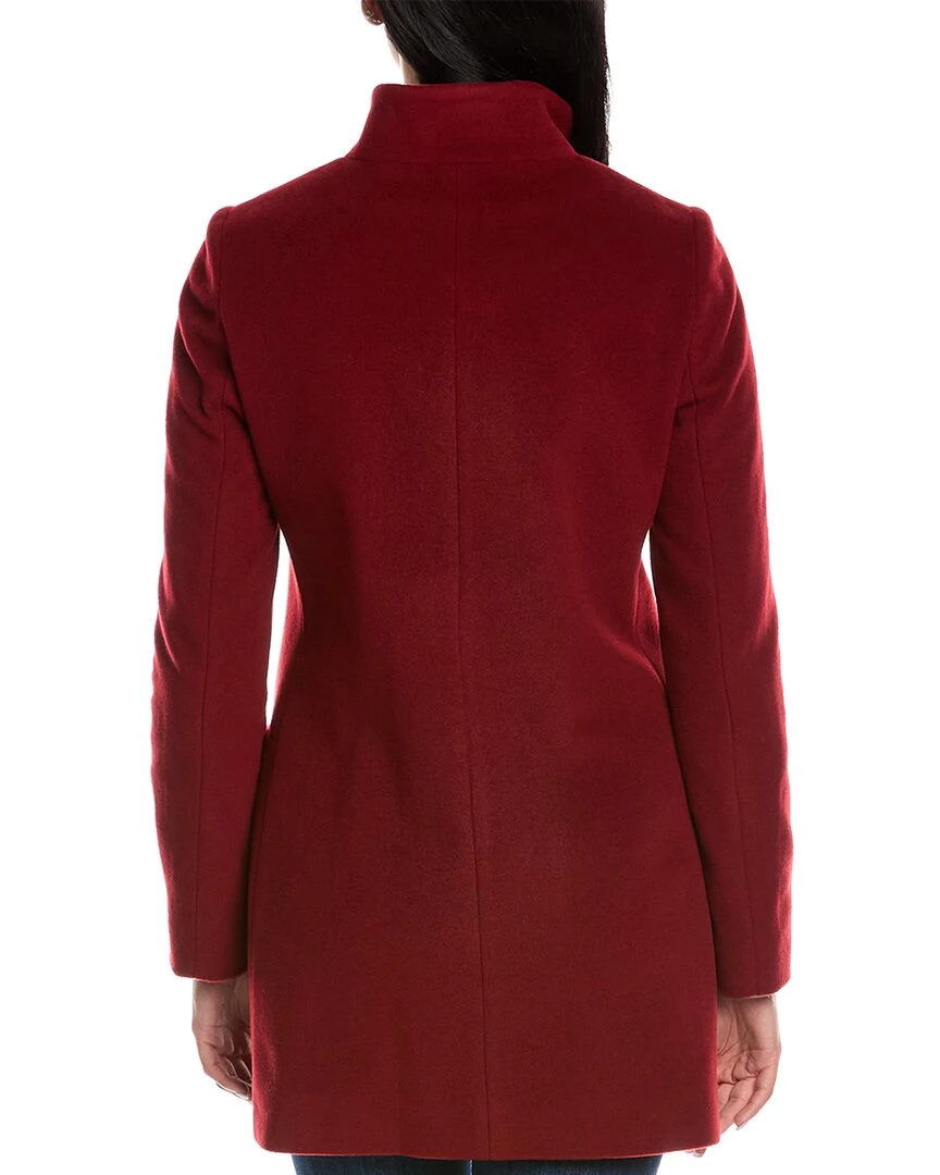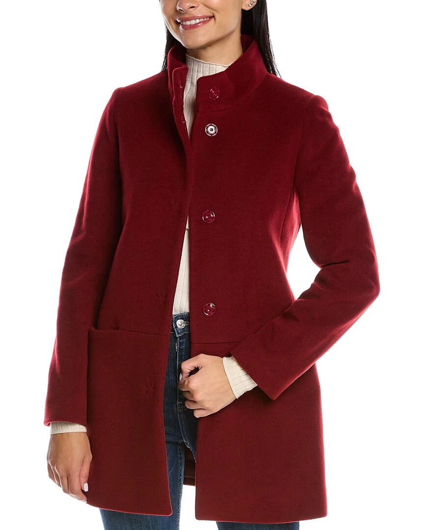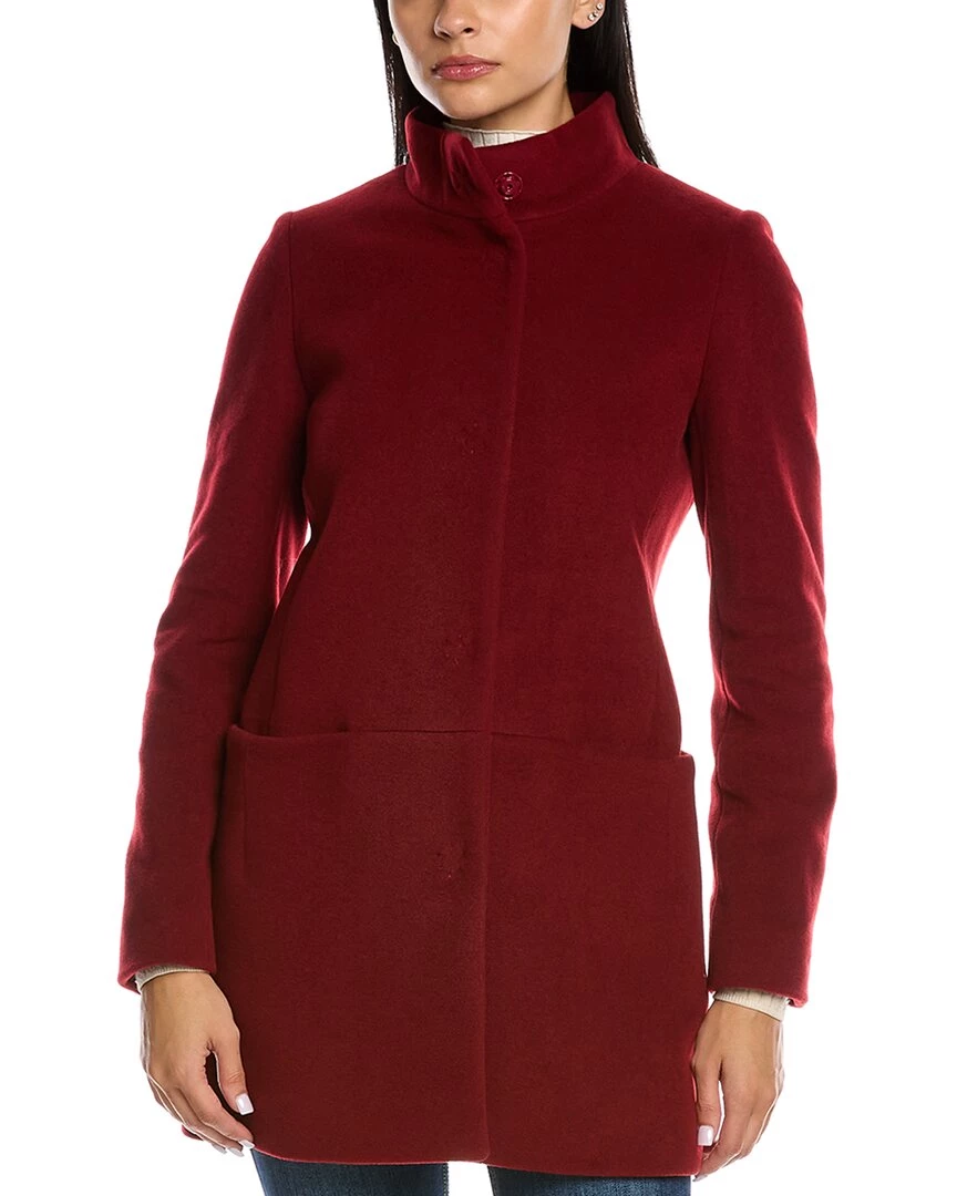 - Wool & Cashmere-Blend Coat In Red With Stand-Up Collar And Dual Front Pockets