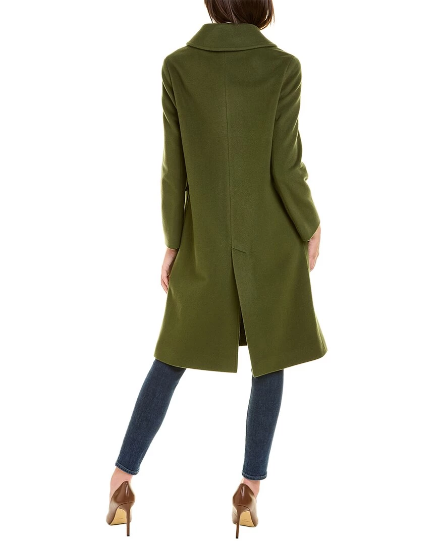 - Wool & Cashmere-Blend Coat In Green With Two Front Pockets And Center Vent At Back Hem